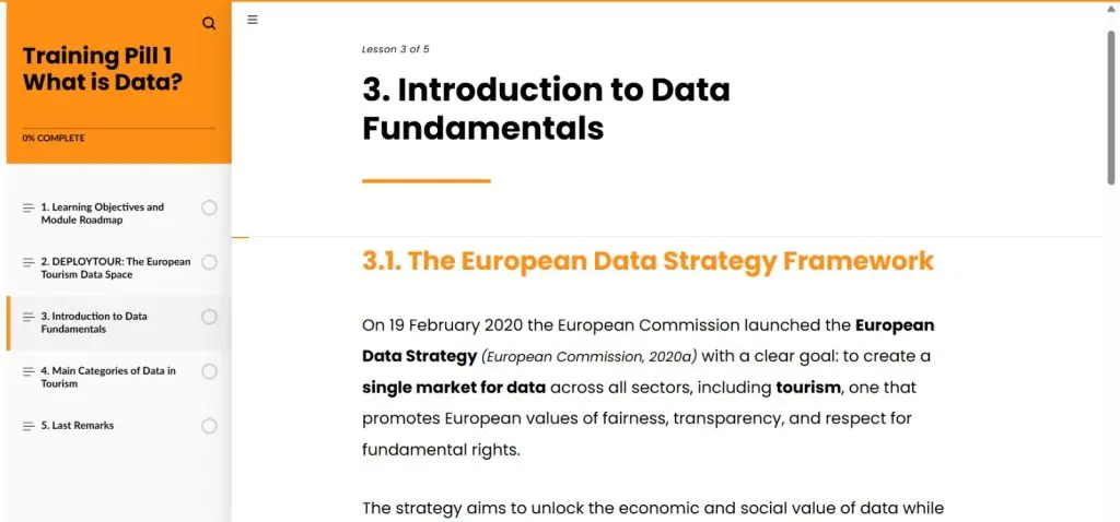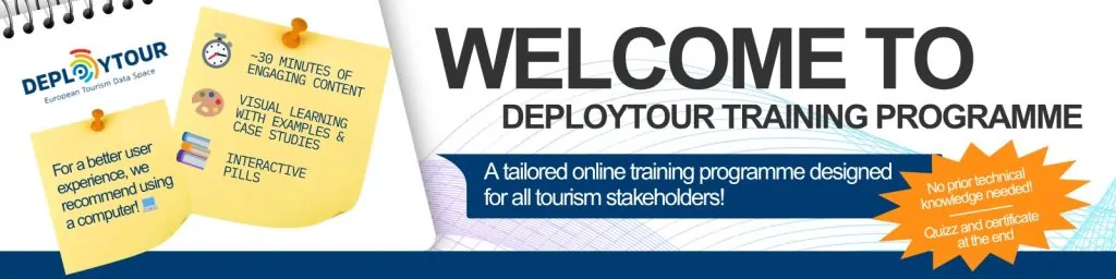 DEPLOYTOUR has developed a tailored online training programme designed for all tourism stakeholders. By participating in the courses, you will transform the way you use, share, and manage data and gain the opportunity to onboard to the European Tourism Data Space