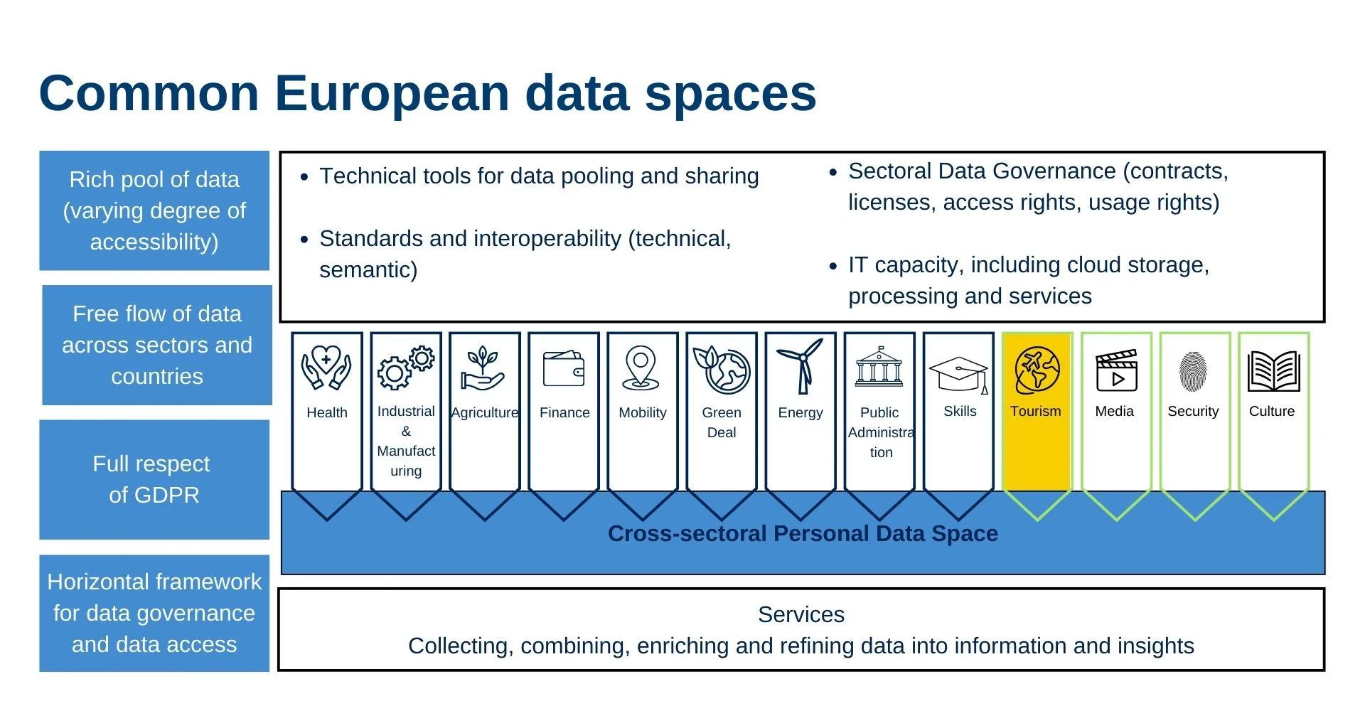 - Common European Data Spaces: Develop dedicated spaces in key sectors such as health, industry, agriculture, finance, energy, tourism (like DEPLOYTOUR!), and public administrations to encourage data sharing and usage.