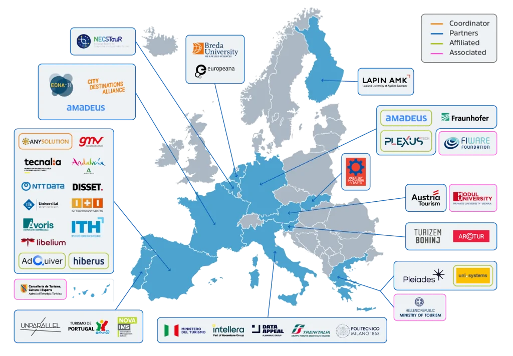 Our partnership brings together key players from various sectors, including innovative SMEs, leading tourism and data companies, national ministries, renowned universities, cutting-edge research centers, technology pioneers, regional administrations, influential networks, professional associations, and specialized consulting firms.